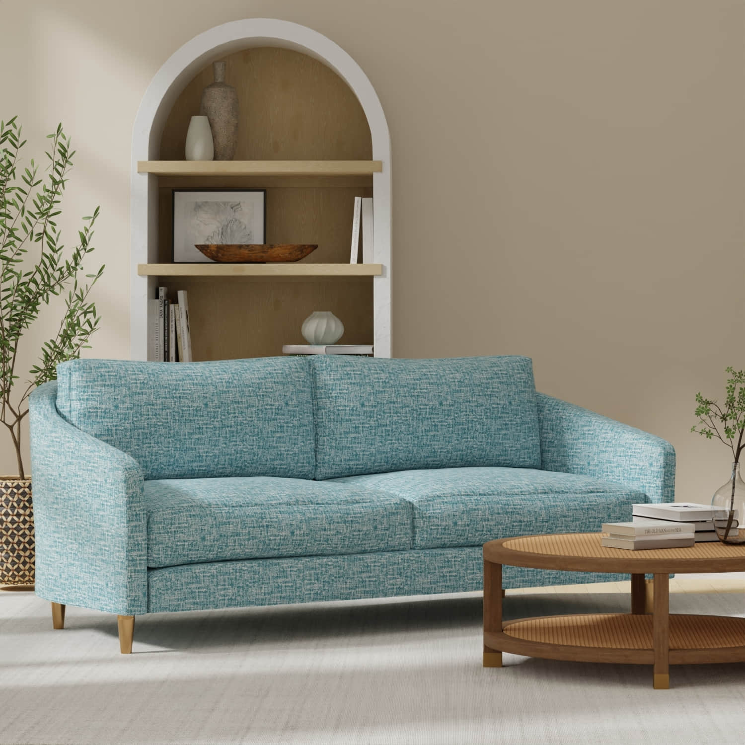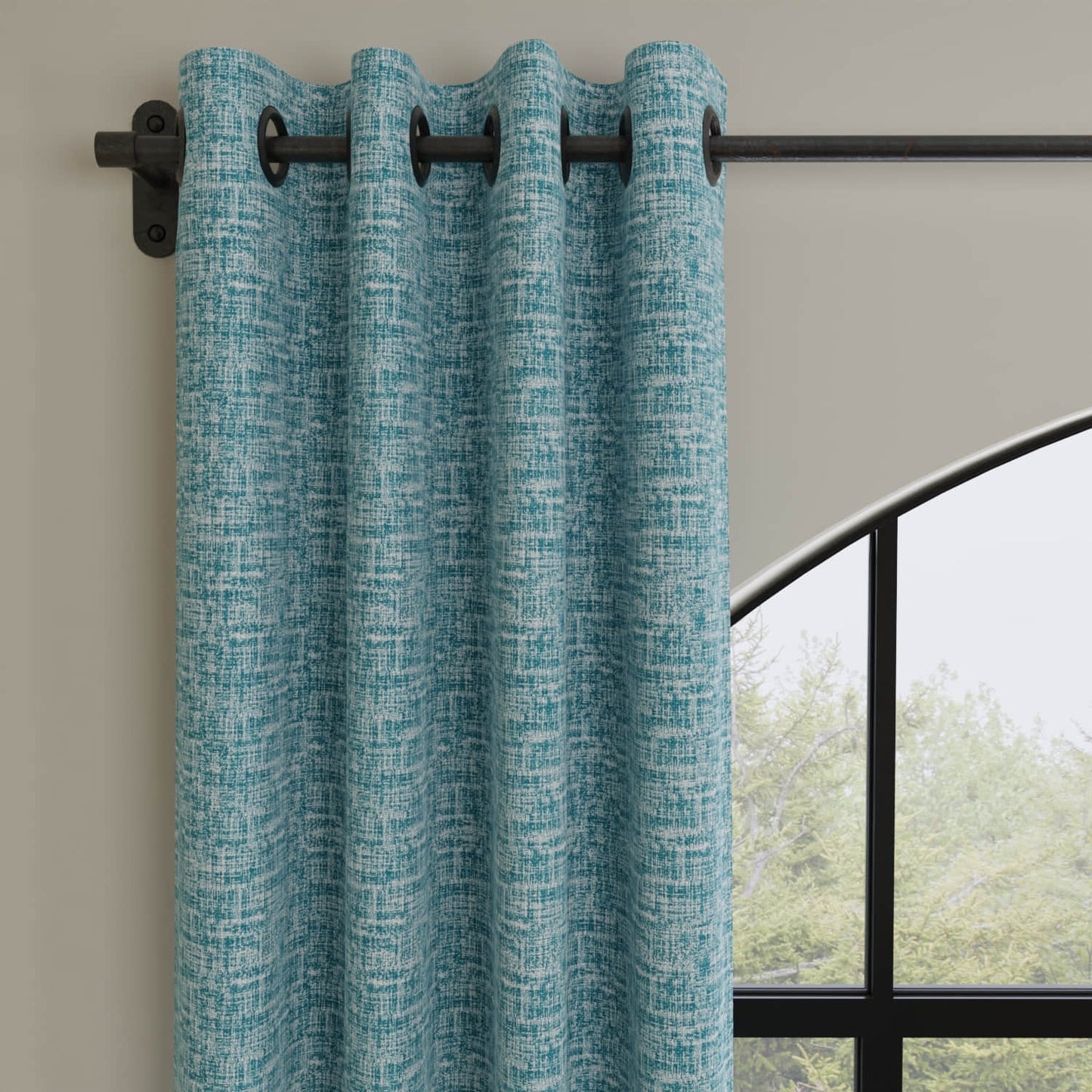 Dive into the aqua shades of the Callaway Aegean fabric. This fabric features an abstract print in a solid color. It's bacteria, mildew, fade, stain, and weather-resistant, made in the USA, and pet-friendly. Made of 100% polyester.