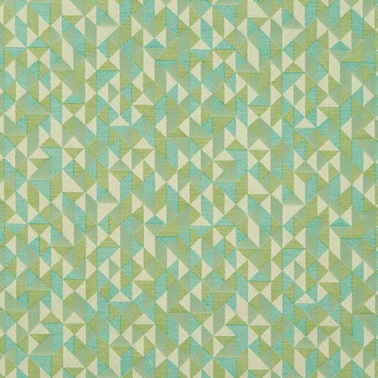The Christopher Capri fabric is in a beautiful aqua and green and features a woven geometric, small-scale pattern. It's bacteria, mildew, fade and stain-resistant, eco and pet-friendly, and made in the USA. Made of 100% polyester.