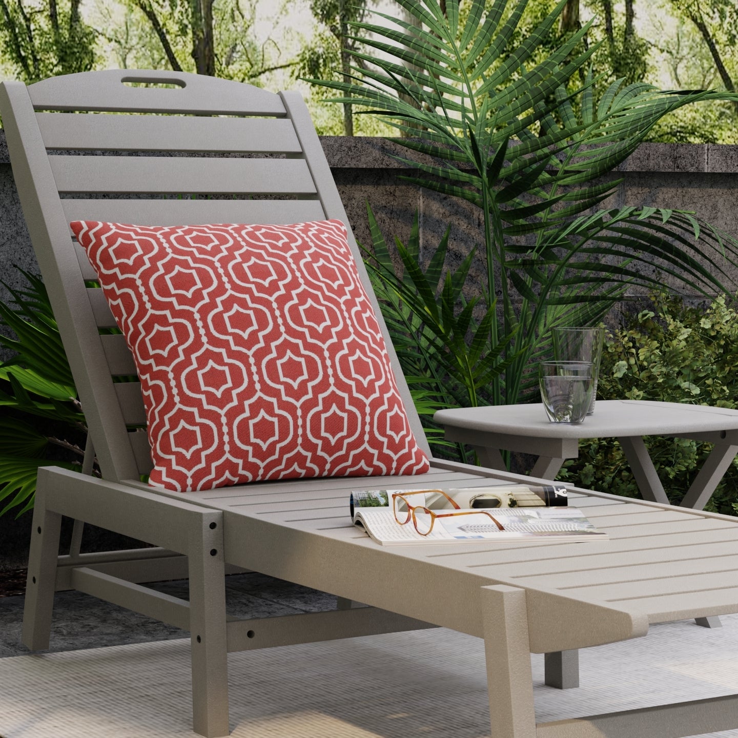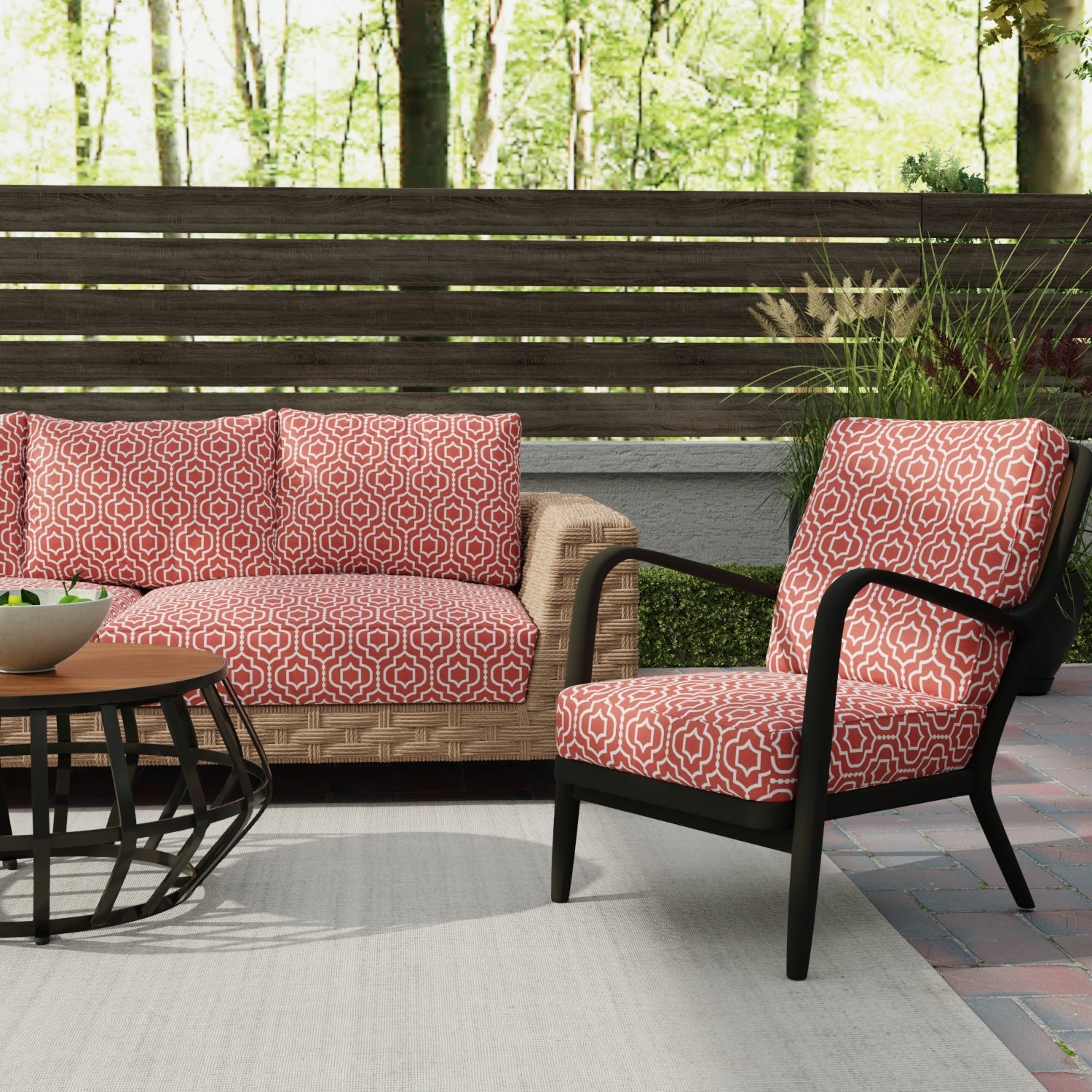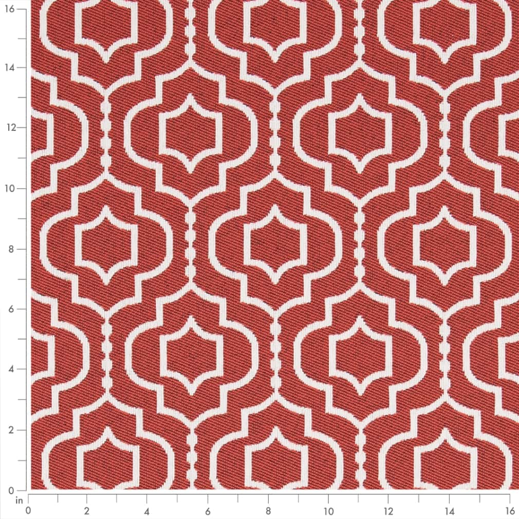 Meet Corwin Salmon, a woven geometric design in coral. It's bacteria, mildew, fade, stain, and weather-resistant, made in the USA, and pet-friendly. Made of 100% Polypropylene (Olefin).