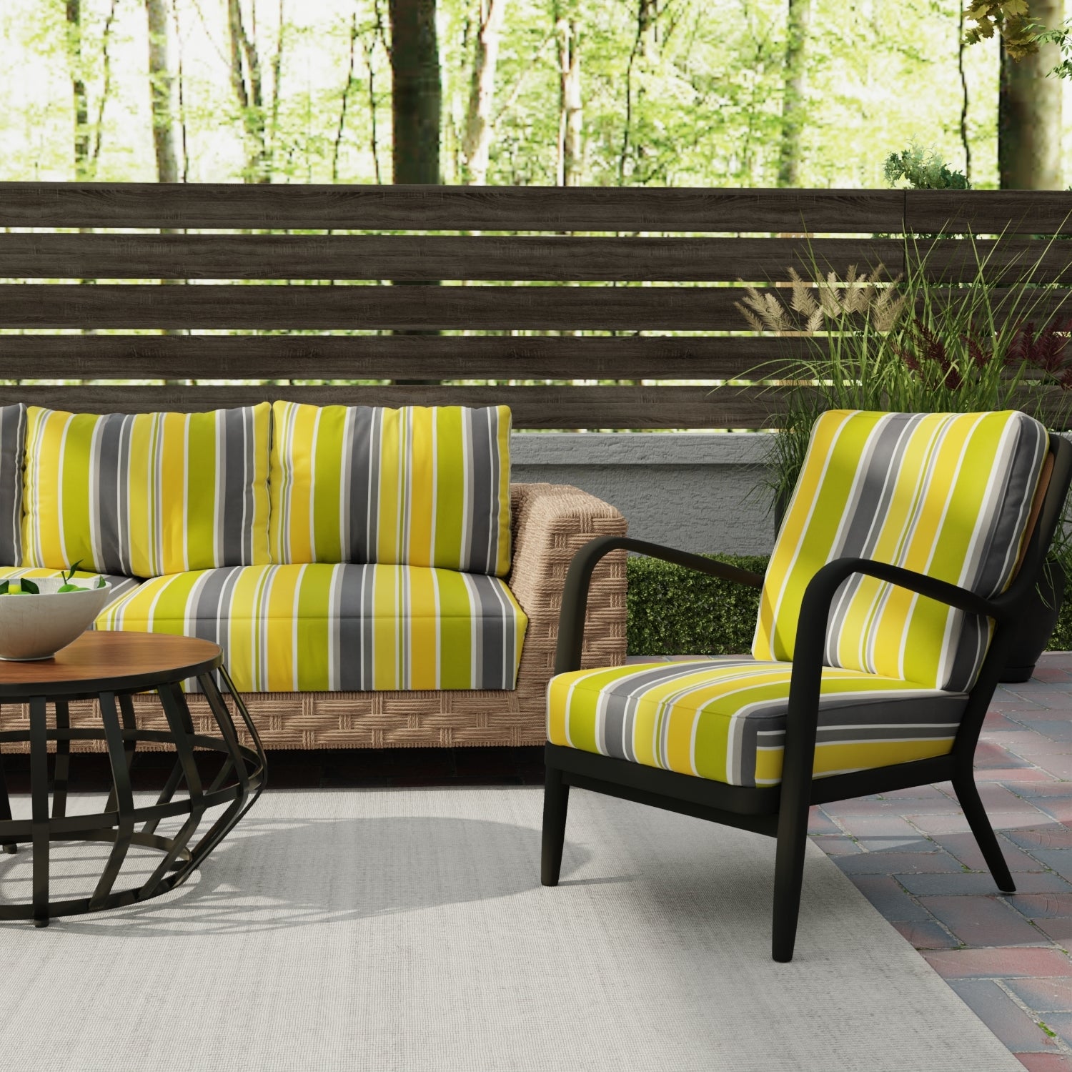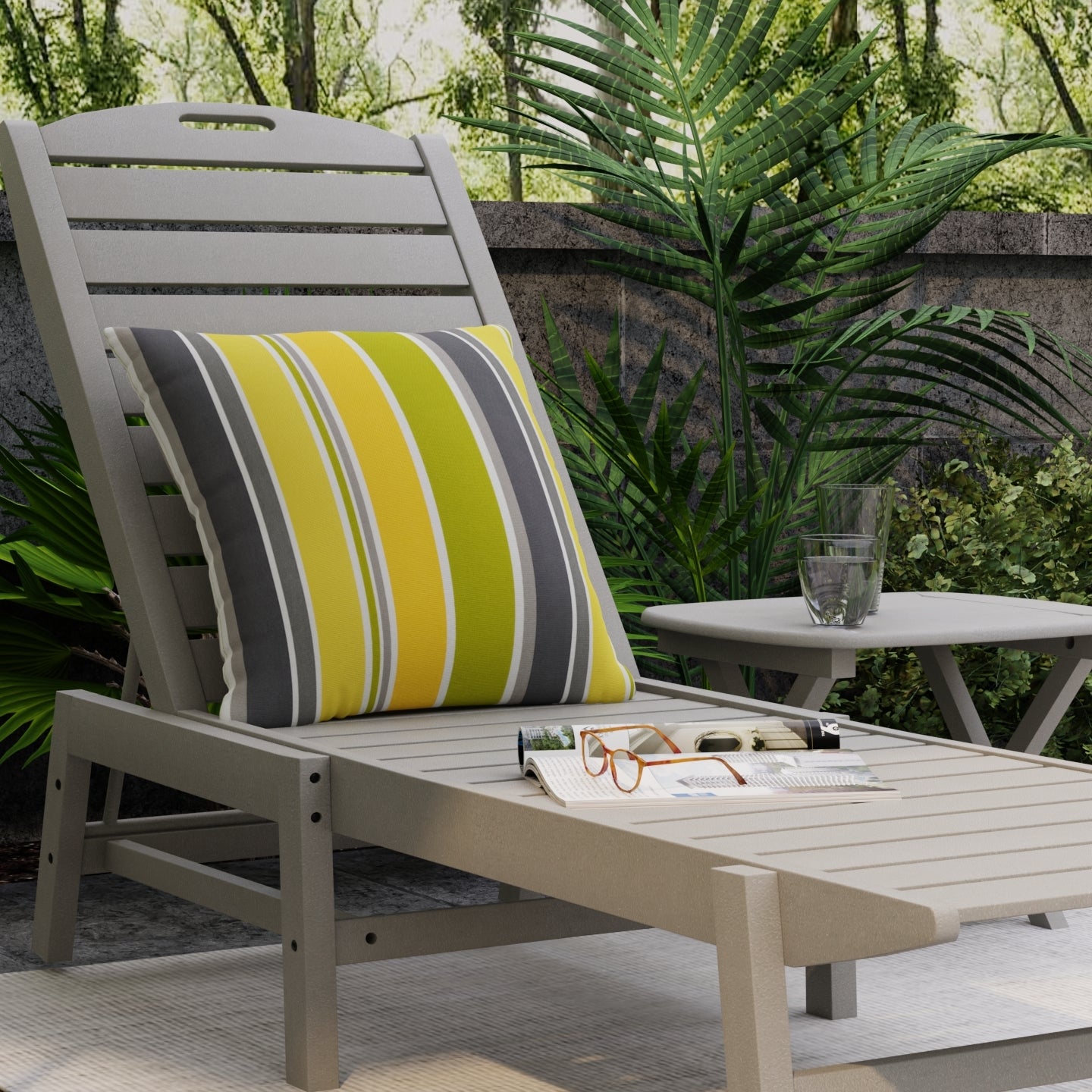The Dominica Limelight fabric is in a beautiful yellow and green and features a stripe pattern. It's pet-friendly, and bacteria, mildew, fade, and stain-resistant. Made of 100% polyester.