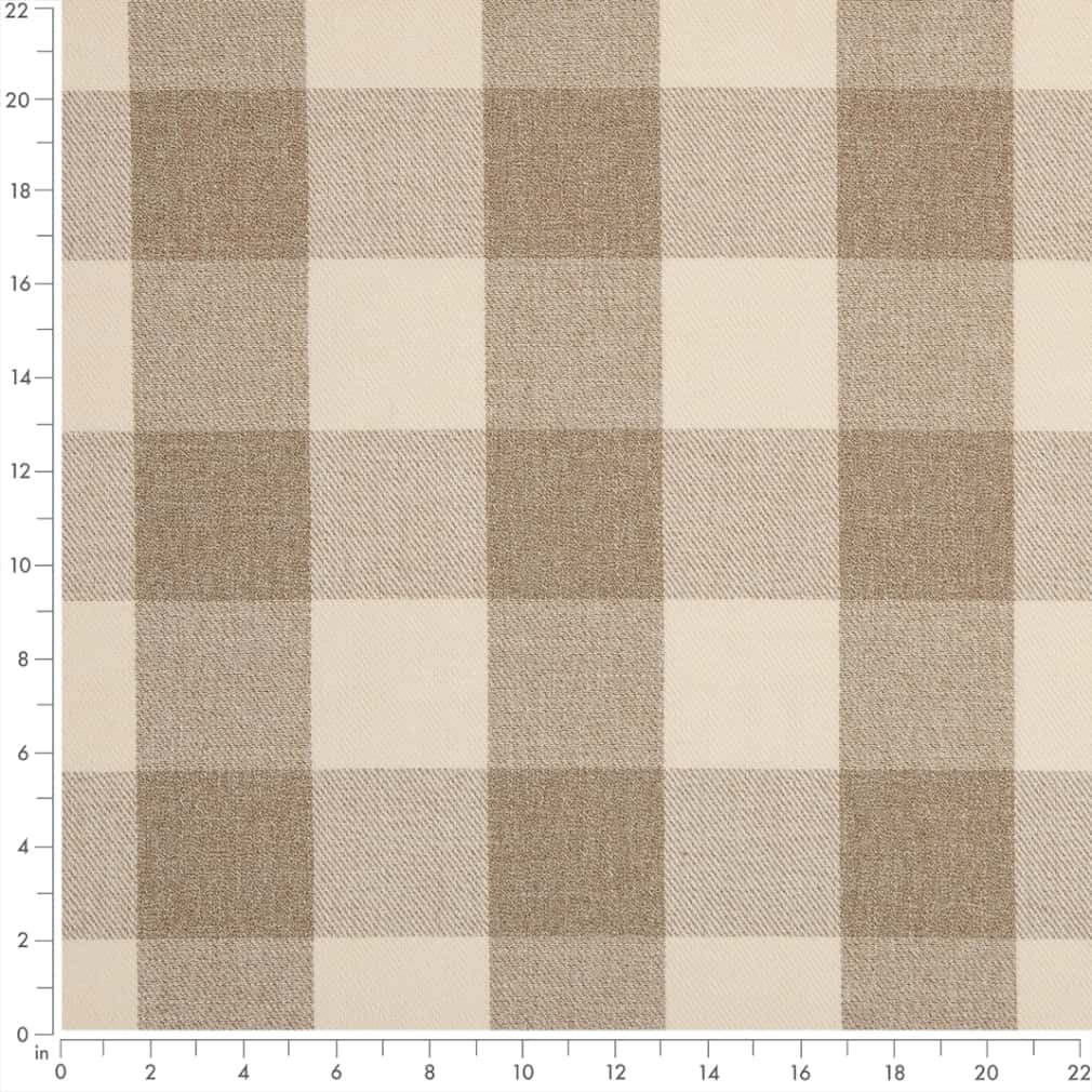 Imagine transforming your home with the neutral Elba Sand fabric. This fabric features a woven pattern and that lovely check, plaid pattern. It's fade-resistant.