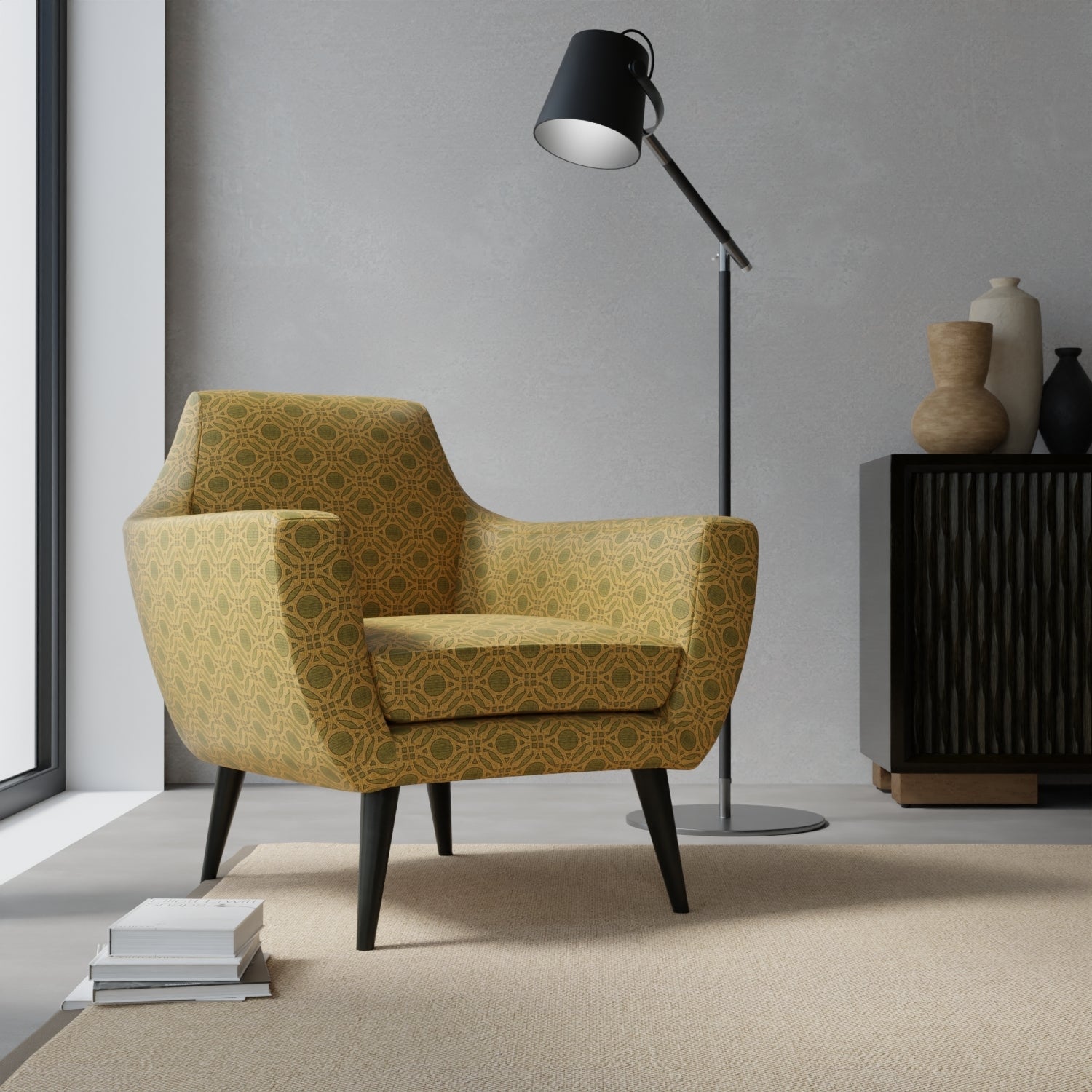Gabby Herbal upholstery fabric features a woven abstract geometric pattern. Made in America with 100% polyester fiber content, this eco-friendly fabric is fade-resistant, stain-resistant, and pet-friendly. Its performance-grade quality ensures durability, while the finish permanently repels liquid, stains, soil, and odors. Upgrade your space with Gabby Herbal today.