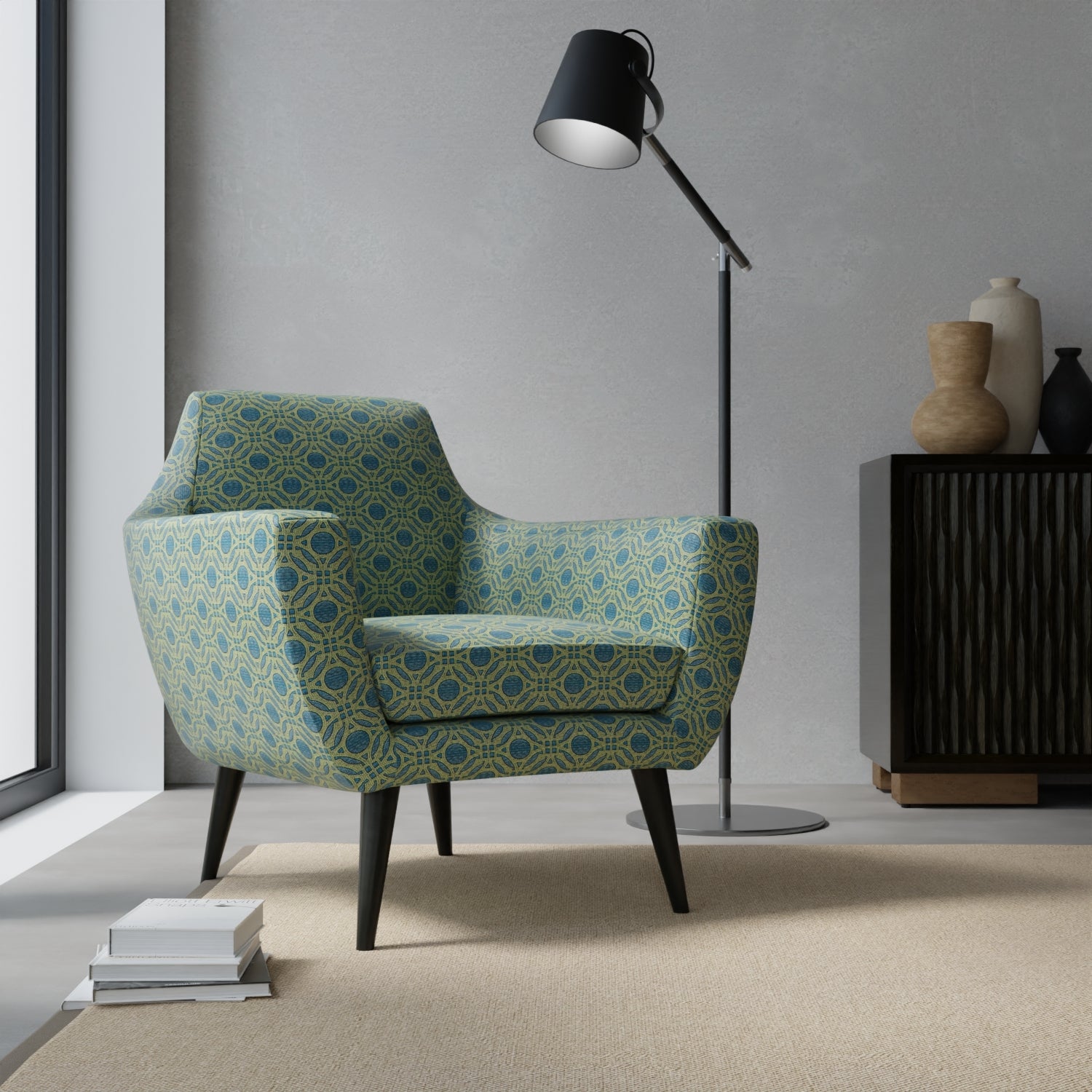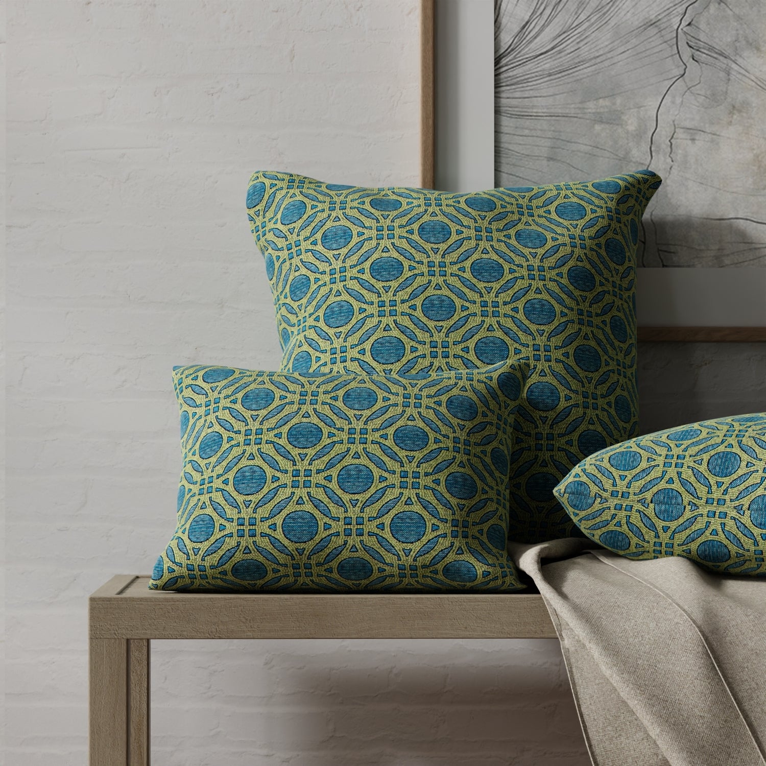 Gabby Teal upholstery fabric is a stunning choice for your interior design needs. This woven pattern features an abstract geometric design, making it a versatile option for any space. Crafted with 100% polyester, it is eco-friendly, fade-resistant, and stain-resistant. With a finish that repels liquid, stains, soil, and odor, this fabric is both practical and stylish. Made in America, this performance-grade fabric is also pet-friendly, ensuring durability and longevity in your home.