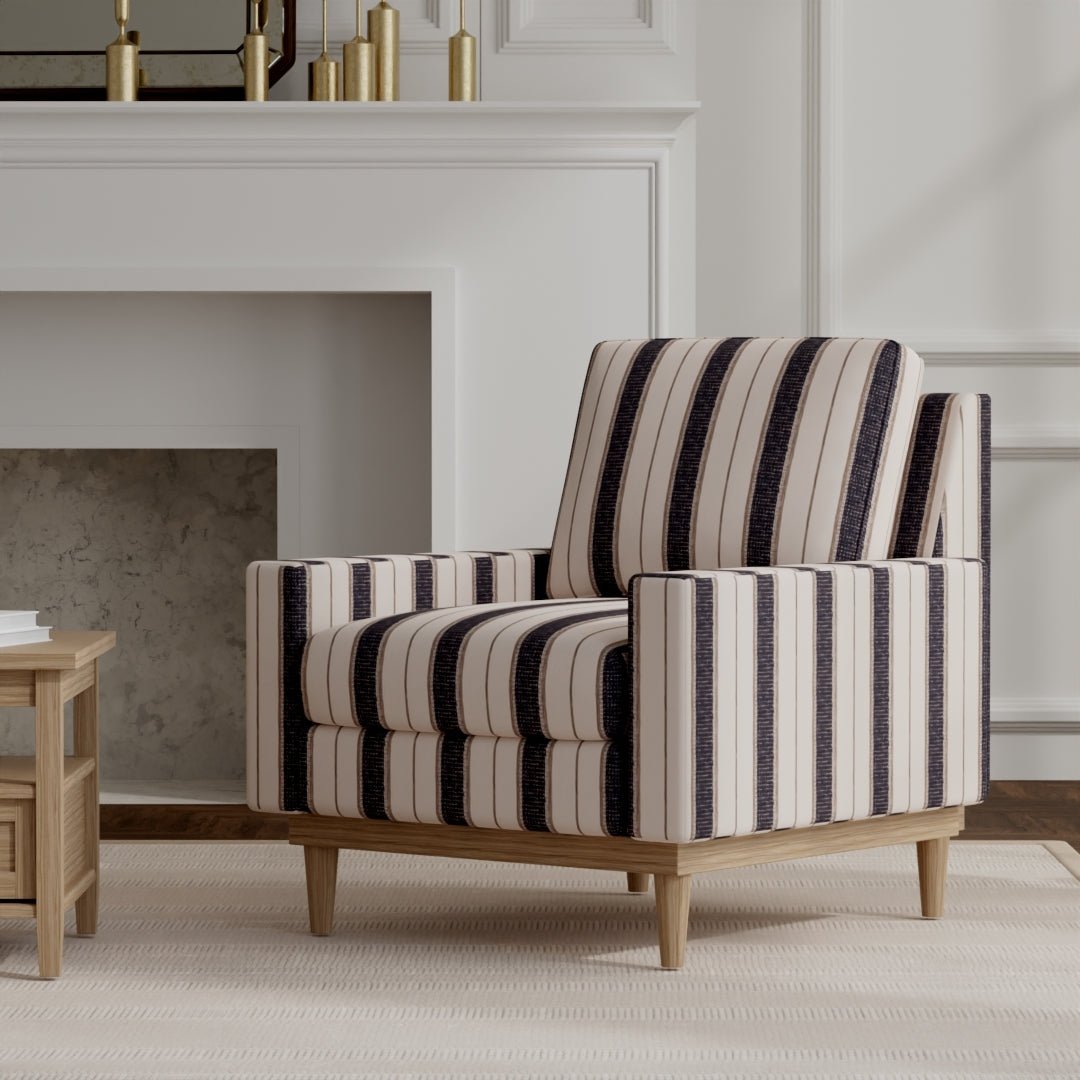 Jareth Azure presents a classic stripe pattern with a balanced scale, suitable for various upholstery needs. The calming azure tone sets a serene visual mood, making it ideal for creating a tranquil space. Its texture is inviting, offering a soft yet sturdy feel. With EcoTech technology, this fabric provides naturally inherent stain resistance without added treatments, ensuring practical use in busy environments. A reliable choice for upholstery, Jareth Azure combines style and function with confidence.
