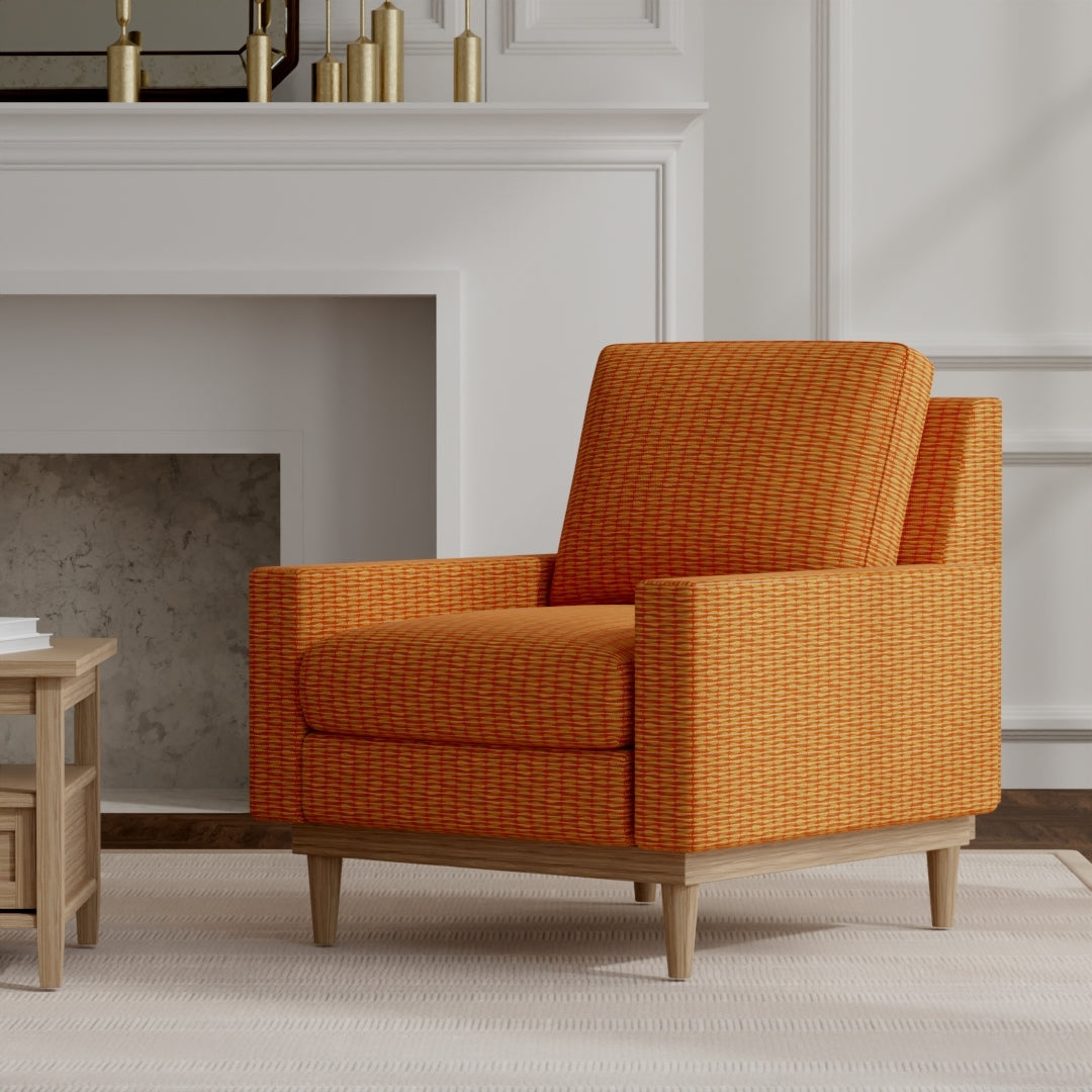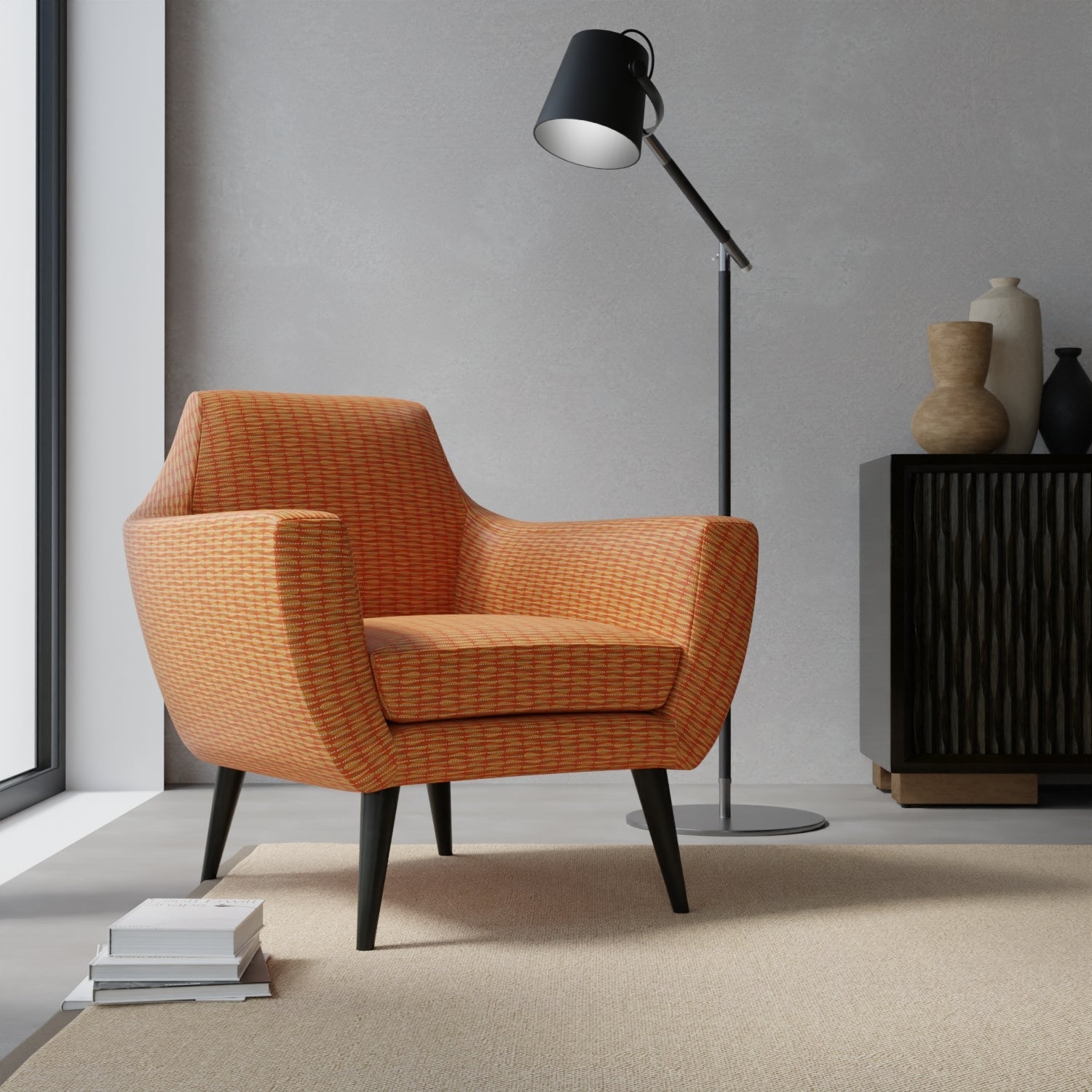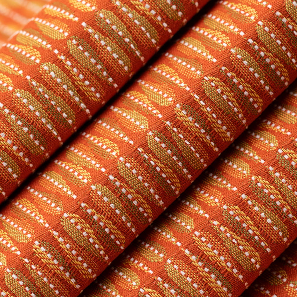 Judy Pumpkin upholstery fabric is a stylish choice for your interior design needs. This fabric features an abstract geometric woven pattern in a small scale, making it perfect for various furniture pieces. Crafted with 100% polyester, it is eco-friendly, fade-resistant, and stain-resistant, ensuring long-lasting beauty and durability. Made in America, this performance-grade fabric is also pet-friendly and finished to repel liquid, stains, soil, and odors. Upgrade your upholstery with Judy Pumpkin for a blend of style and functionality.