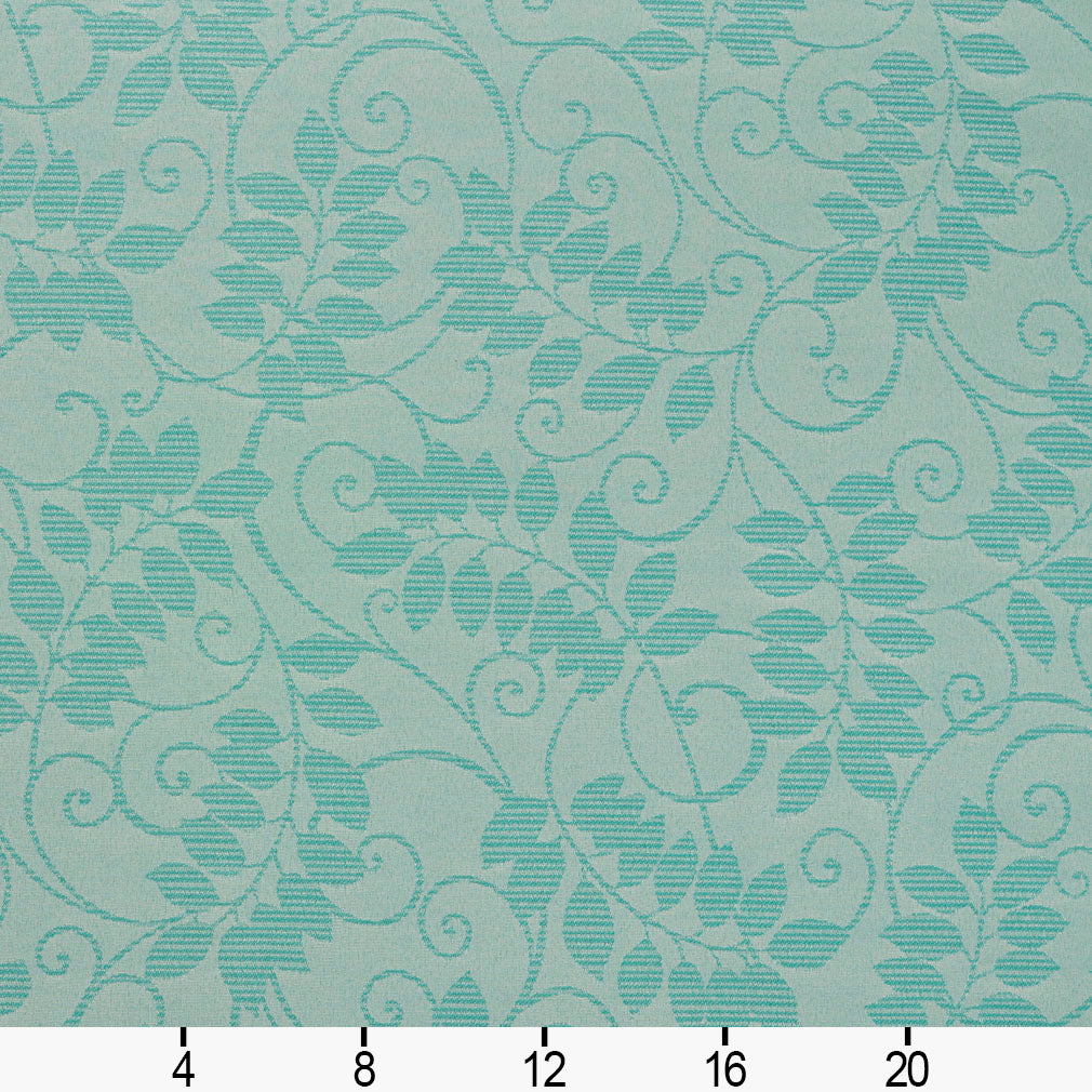 Dive into the aqua shades of the Leonardo Lagoon fabric. This a woven leaf pattern. It's bacteria, mildew, fade, stain, and weather-resistant, made in the USA, and pet-friendly. Made of 100% polyester.