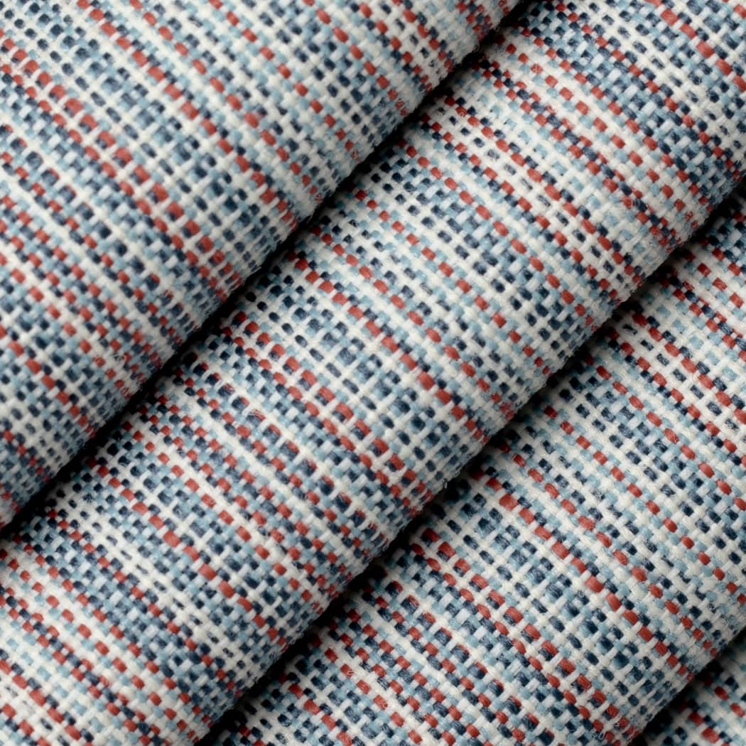 Dive into a world of serene sophistication with Melody Lake fabric. Featuring a chic stripe design, this blue and red fabric brings a touch of charm to your home. Its woven texture adds depth and interest, while the robust blend of 71% Polypropylene and 29% polyester ensures durability. Ideal for upholstery projects, this fabric is visually appealing and weather-resistant. It repels stains, liquids, and mildew, making it a practical fabric choice for outdoor and indoor use. Choose Melody Lake for a fabric that combines style, comfort, and durability in every thread!