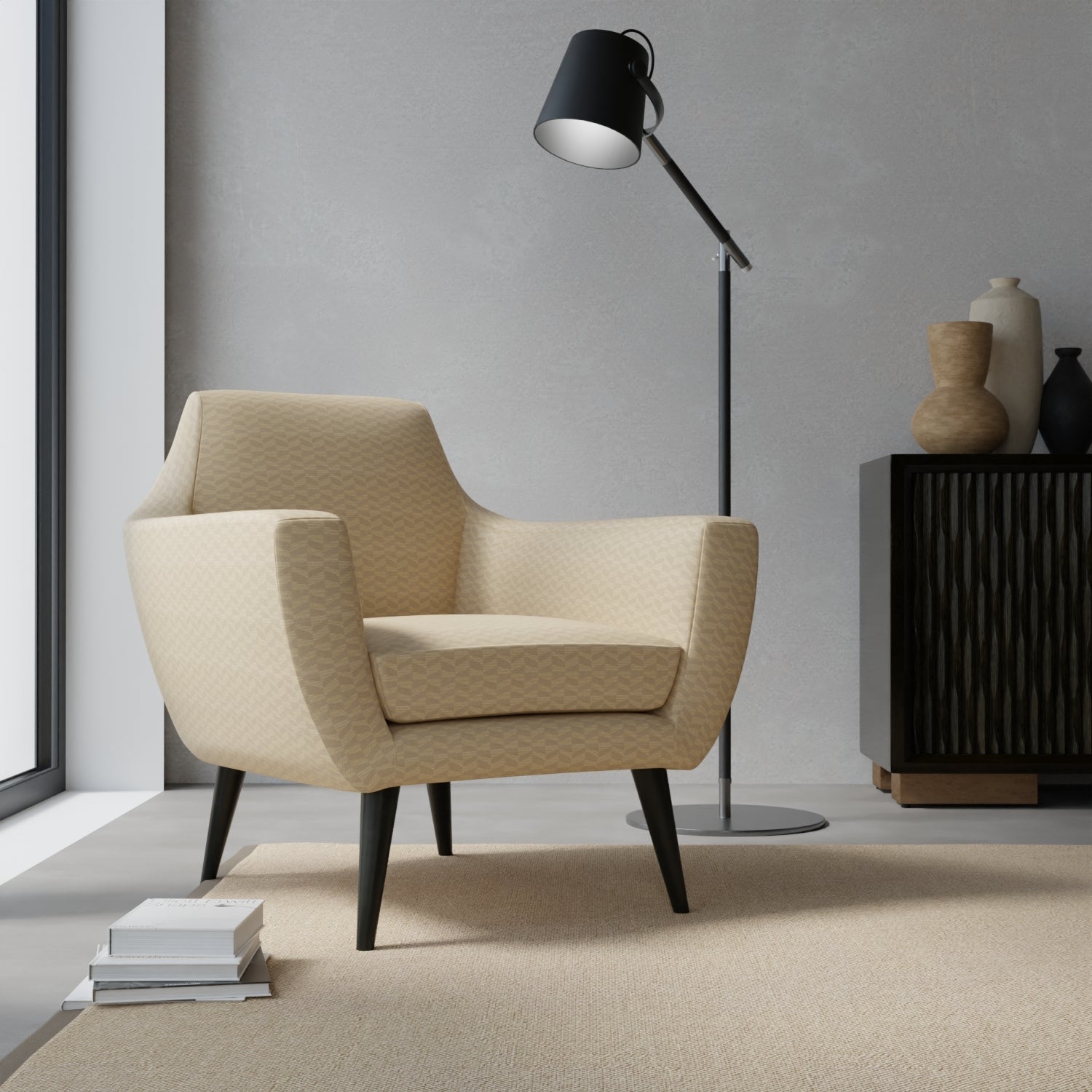 Nero Straw upholstery fabric offers a stylish abstract geometric pattern in a small-scale design. Made in America with eco-friendly 100% polyester fibers, this fabric is performance-grade, pet-friendly, and stain-resistant. Its finish permanently repels liquid, stains, soil, and odors while also being fade-resistant, ensuring long-lasting beauty and durability.
