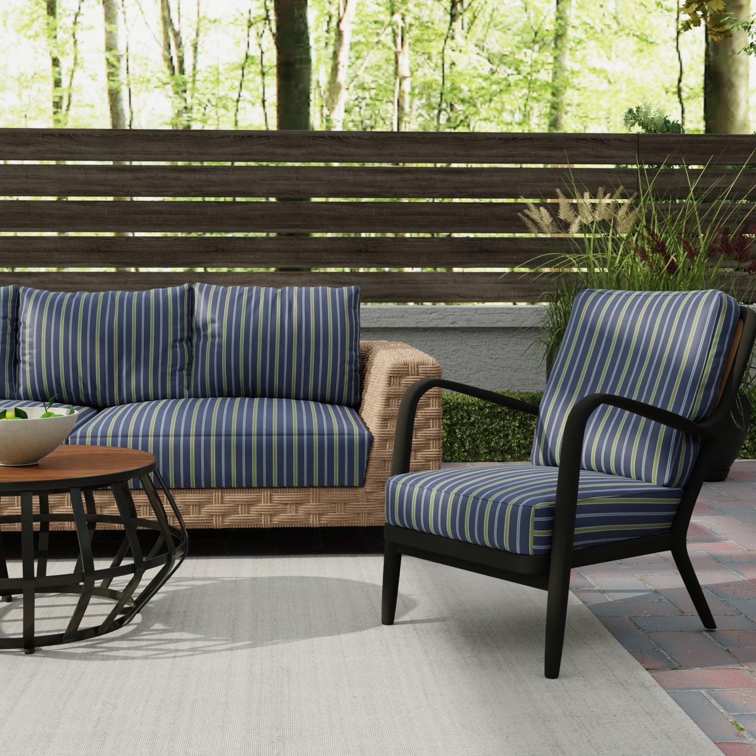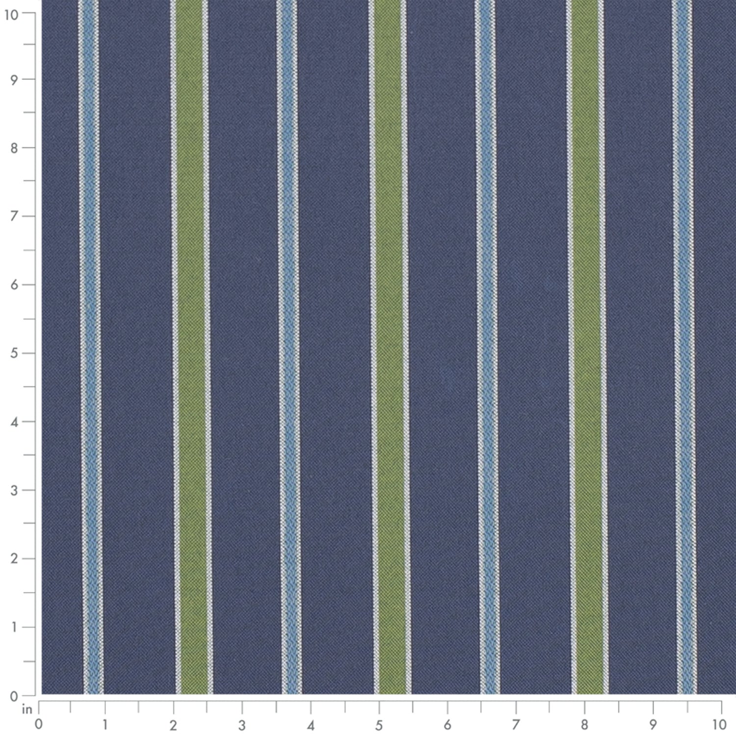 Rudolph Navy upholstery fabric features a woven striped pattern in vibrant blue and green hues, adding a classic touch to any space. Crafted from 100% solution-dyed polyester, Rudolph Navy is a durable, weather-resistant fabric ideal for outdoor and indoor use. Its waterproof backing, fade resistance, and stain and liquid repellence make it perfect for outdoor living areas and households with children or pets. The fabric is mildew-resistant and PFAS-free, offering a safe, eco-friendly option for upholstery. Rudolph Navy combines style and practicality for upholstery and home decor projects.