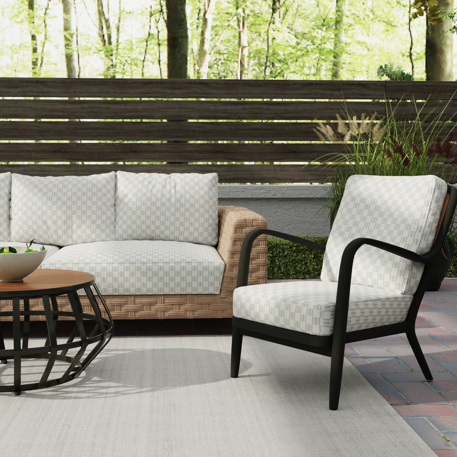 Ruti Citron upholstery fabric features a woven checkerboard pattern in vibrant green and blue hues, adding a touch of brightness to any space. Crafted from 100% solution-dyed polyester, Ruti Citron is a durable, weather-resistant fabric ideal for outdoor and indoor use. Its waterproof backing, fade resistance, and stain and liquid repellence make it perfect for outdoor living areas and households with children or pets. The fabric is mildew-resistant and PFAS-free, offering a safe, eco-friendly option for upholstery. Ruti Citron combines style and practicality for upholstery and home decor projects.