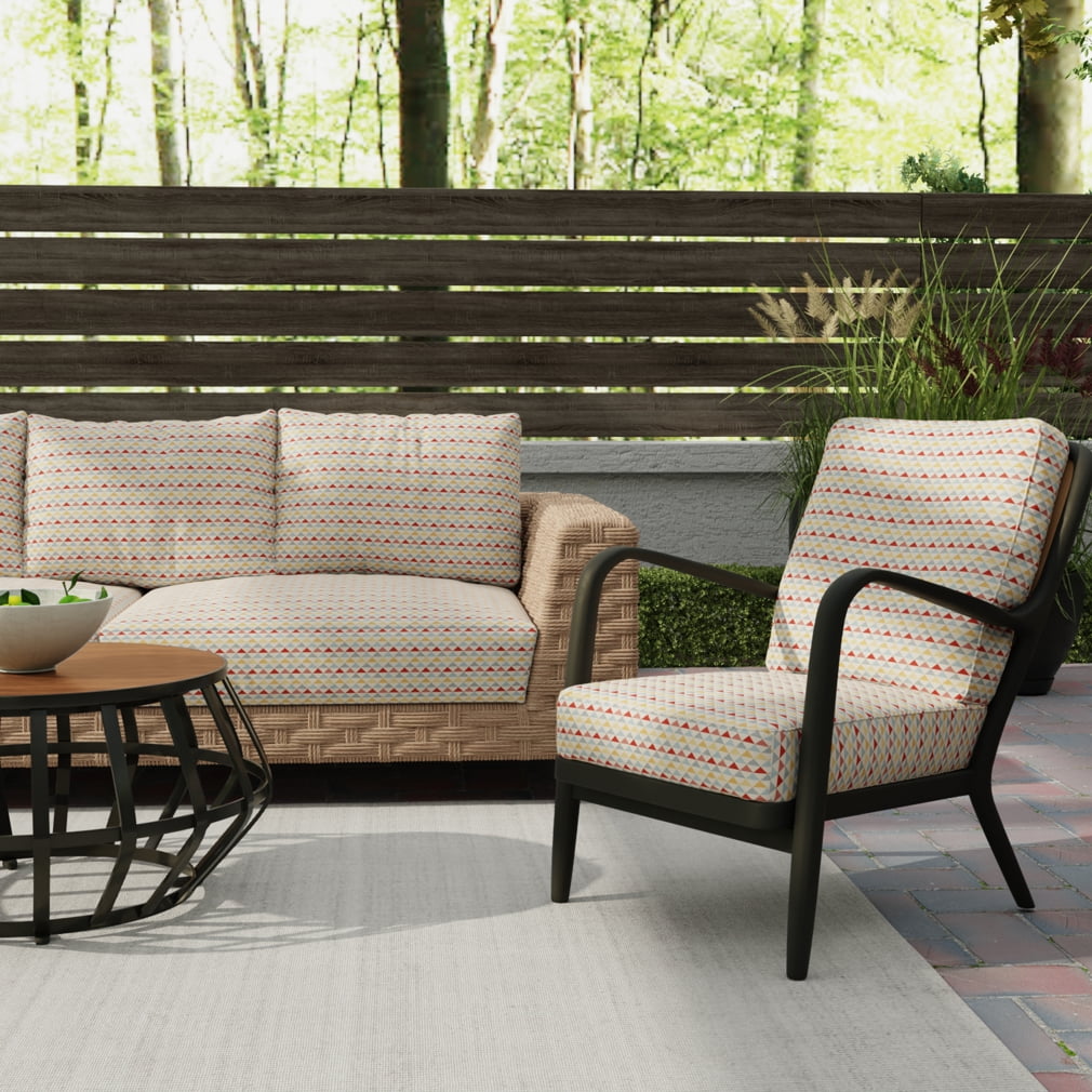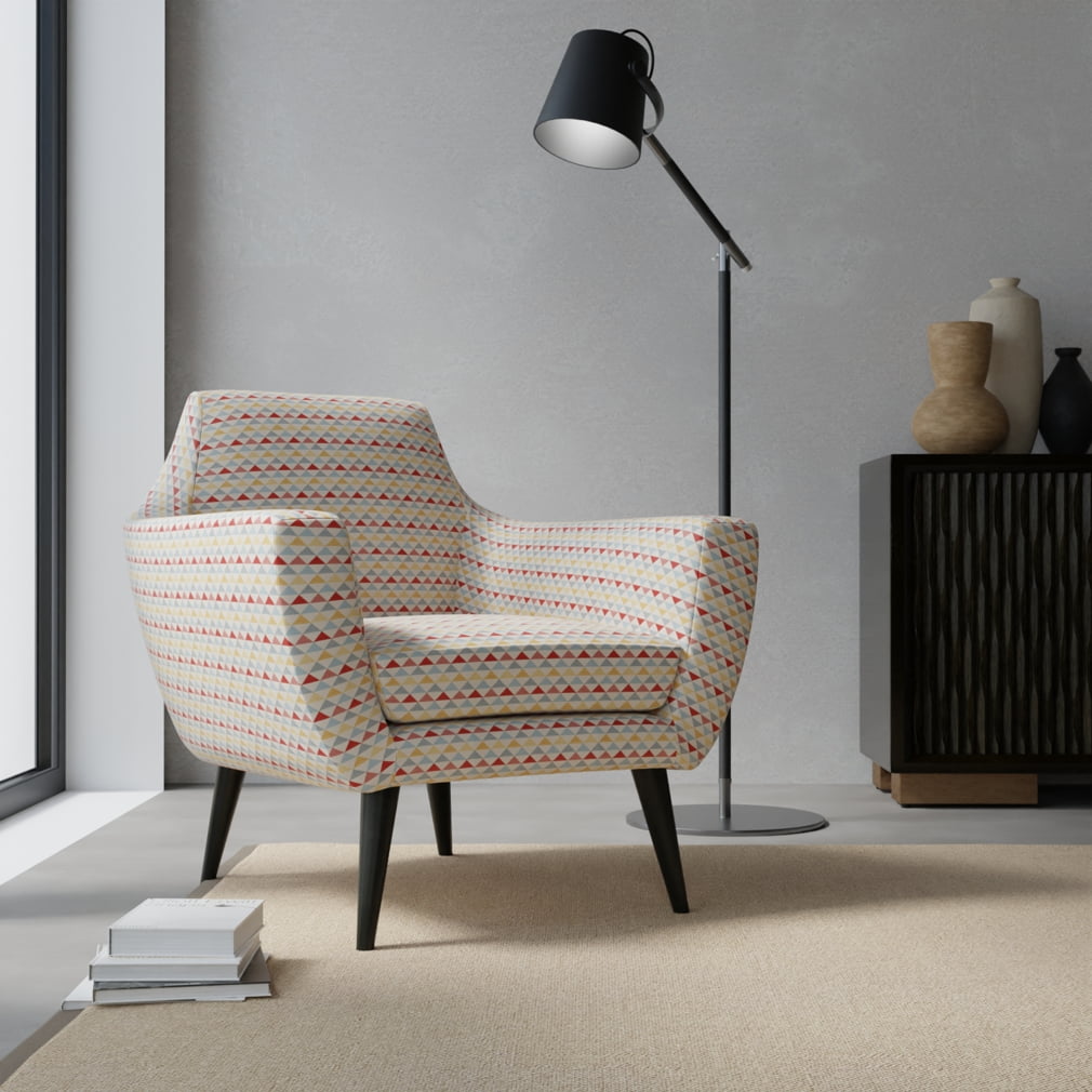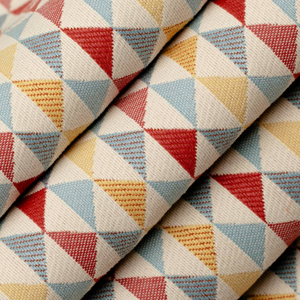 Shanti Oasis fabric is a striking option for enhancing any home decor project. This woven fabric showcases a small-scale diamond pattern in red, blue, and yellow, injecting a lively burst of color into any design. Ideal for upholstery projects, this fabric is visually appealing and weather-resistant. It repels stains, liquids, and mildew, making it a practical fabric option for outdoor and indoor use. Order a sample of Shanti Oasis to experience its quality and design firsthand!
