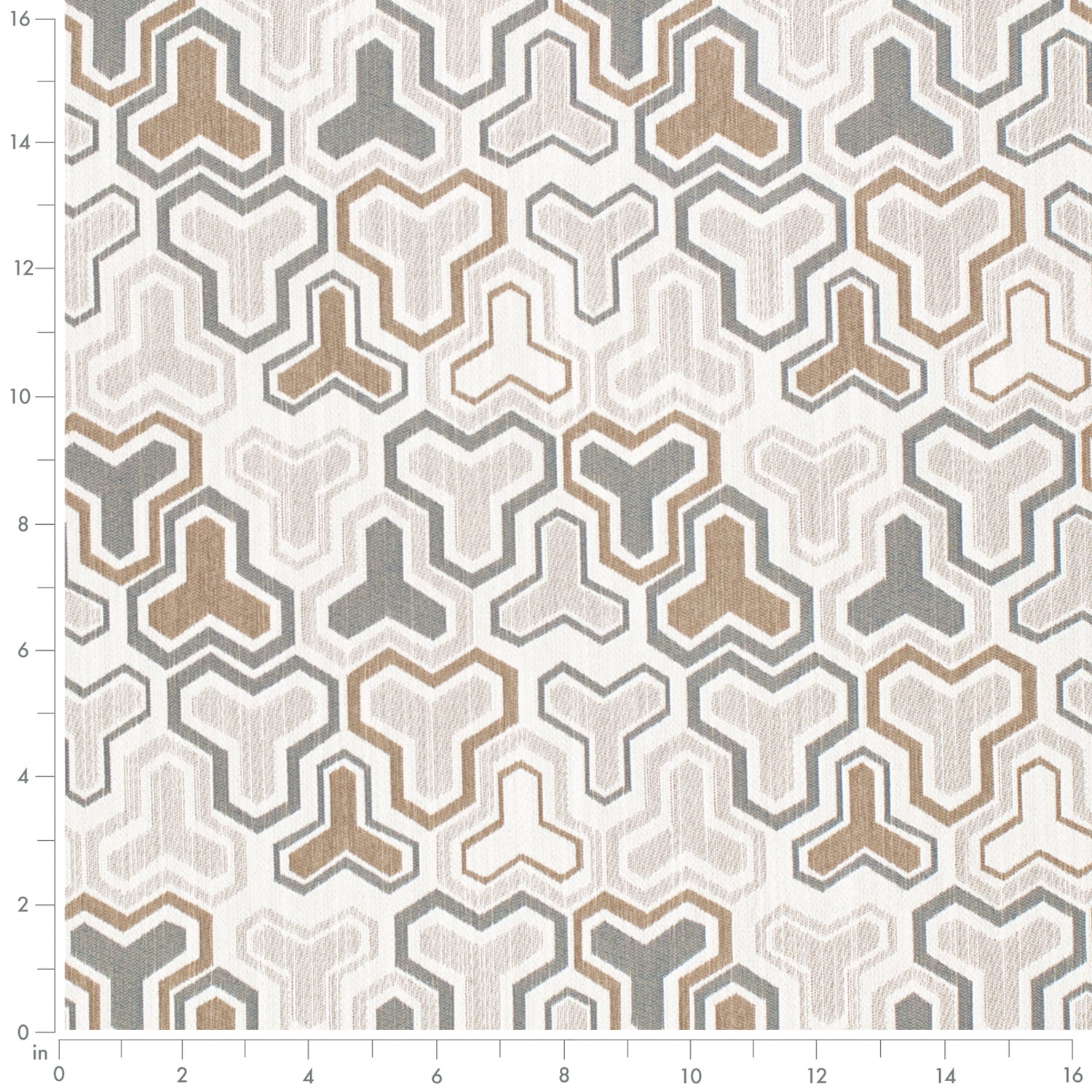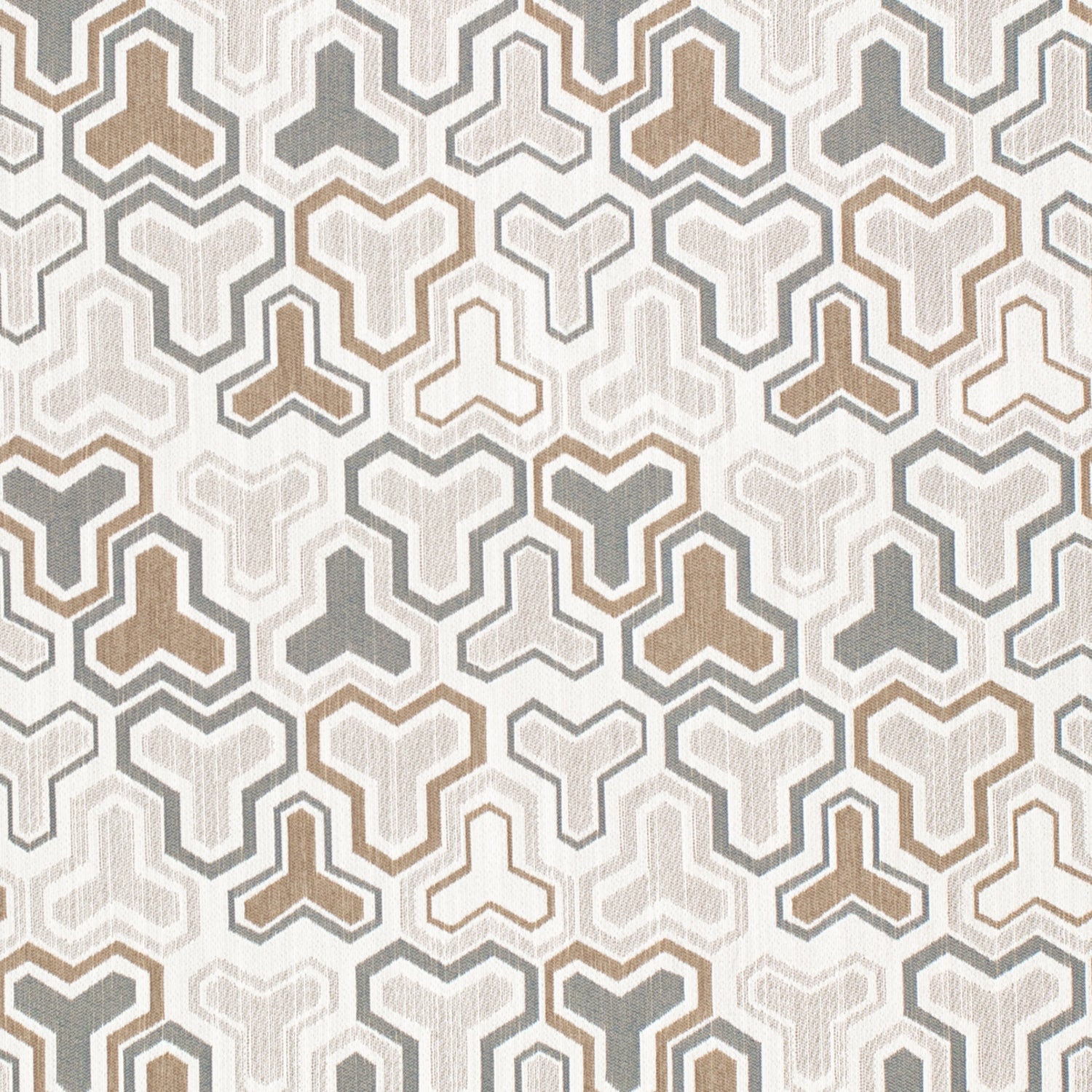 Sherman Caramel upholstery fabric features a woven abstract geometric pattern in soothing browns and greys, adding a soothing touch to any space. Crafted from 100% solution-dyed polyester, Sherman Caramel is a durable, weather-resistant fabric ideal for outdoor and indoor use. Its waterproof backing, fade resistance, and stain and liquid repellence make it perfect for outdoor living areas and households with children or pets. The fabric is mildew-resistant and PFAS-free, offering a safe, eco-friendly option for upholstery. Sherman Caramel combines style and practicality for upholstery and home decor projects.