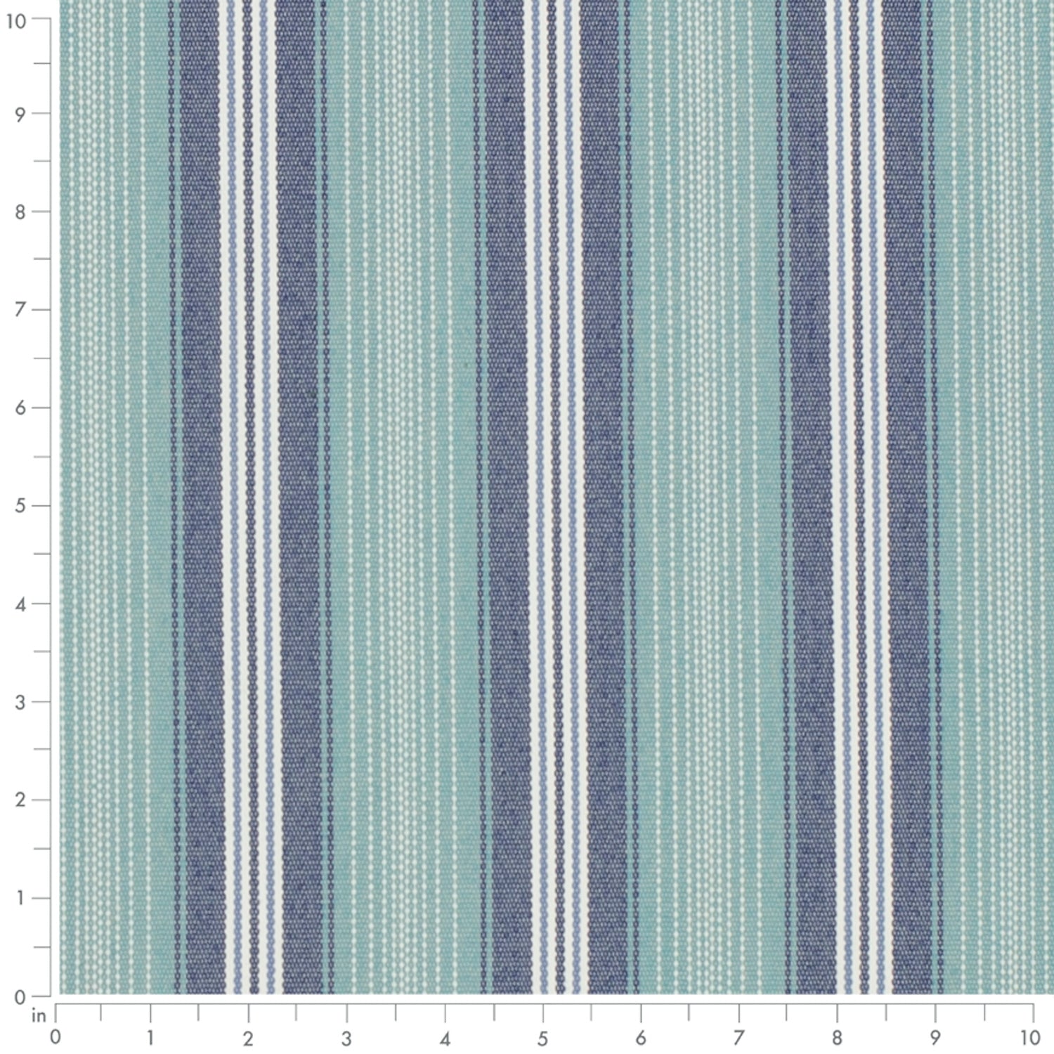 Solomon Aqua upholstery fabric features a woven striped pattern in vibrant blue hues, adding a touch of brightness to any space. Crafted from 100% solution-dyed polyester, Solomon Aqua is a durable, weather-resistant fabric ideal for outdoor and indoor use. Its waterproof backing, fade resistance, and stain and liquid repellence make it perfect for outdoor living areas and households with children or pets. The fabric is mildew-resistant and PFAS-free, offering a safe, eco-friendly option for upholstery. Solomon Aqua combines style and practicality for upholstery and home decor projects.